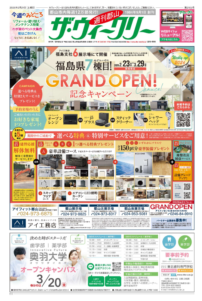 【2026年2月21日号】今週も郡山市のお役立ち情報満載!お見逃しなく!
