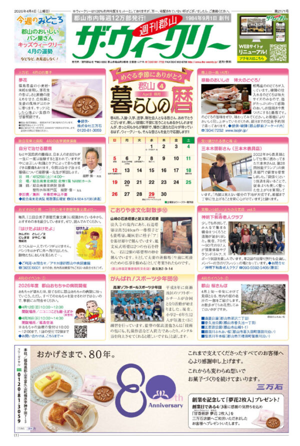 【2026年4月4日号】今週も郡山市のお役立ち情報満載!お見逃しなく!