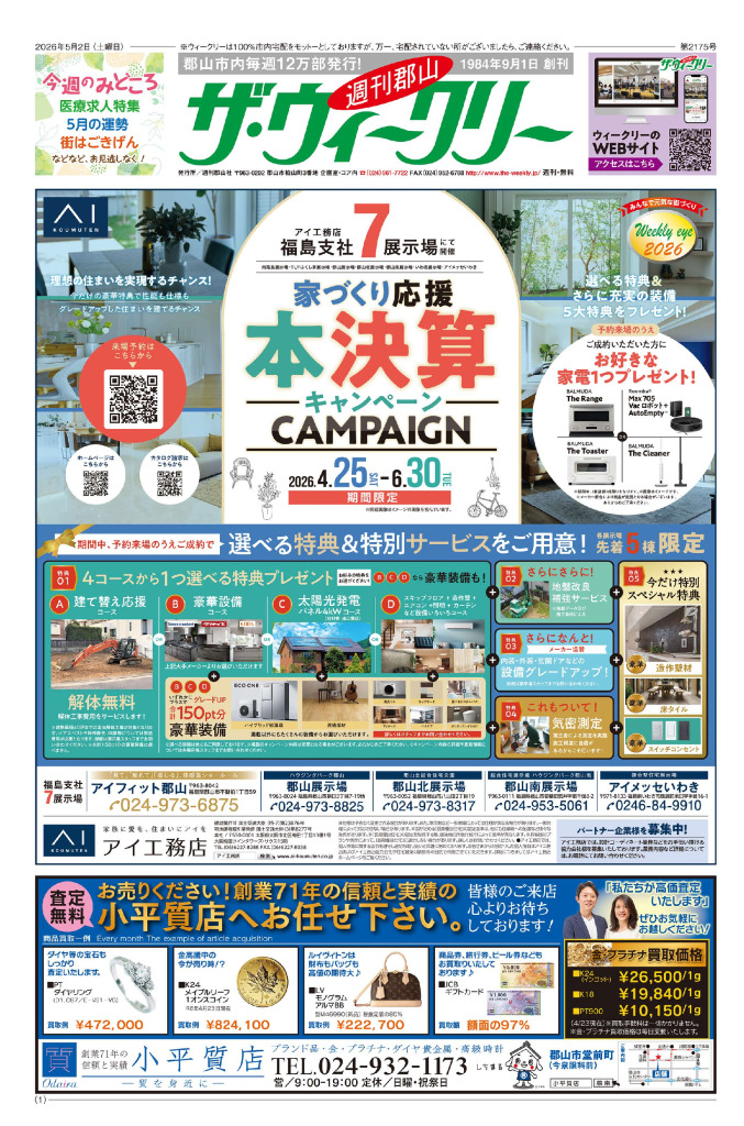 【2026年5月2日号】今週も郡山市のお役立ち情報満載!お見逃しなく!