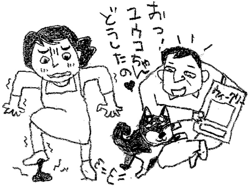 黒柴のユウコちゃんはお母さんが大好きで、お母さんにべったり。お父さんにはあまり寄り付かないので、お父さんはいつも淋しがっていました。
