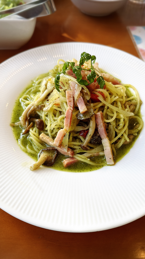 今回は「ローストベーコンとたっぷりきのこジェノベーゼ」