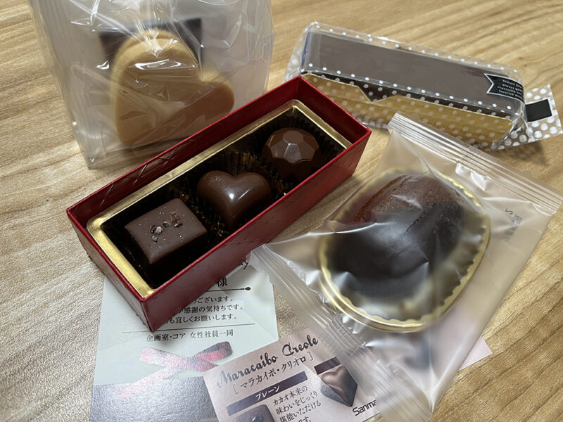 社内では毎年恒例の行事で、ウィークリー事務所の女性社員の皆様からチョコレートの詰め合わせをいただきました。