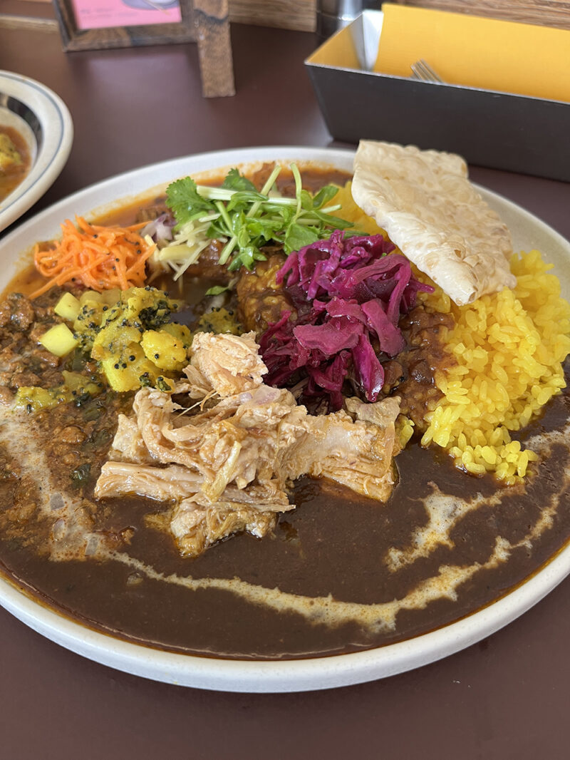 帰りに美術館内のレストラン『笑夢』で大ゴッホ展とコラボしている「豚肉のコンフィのスパイスカレー」を食べました。