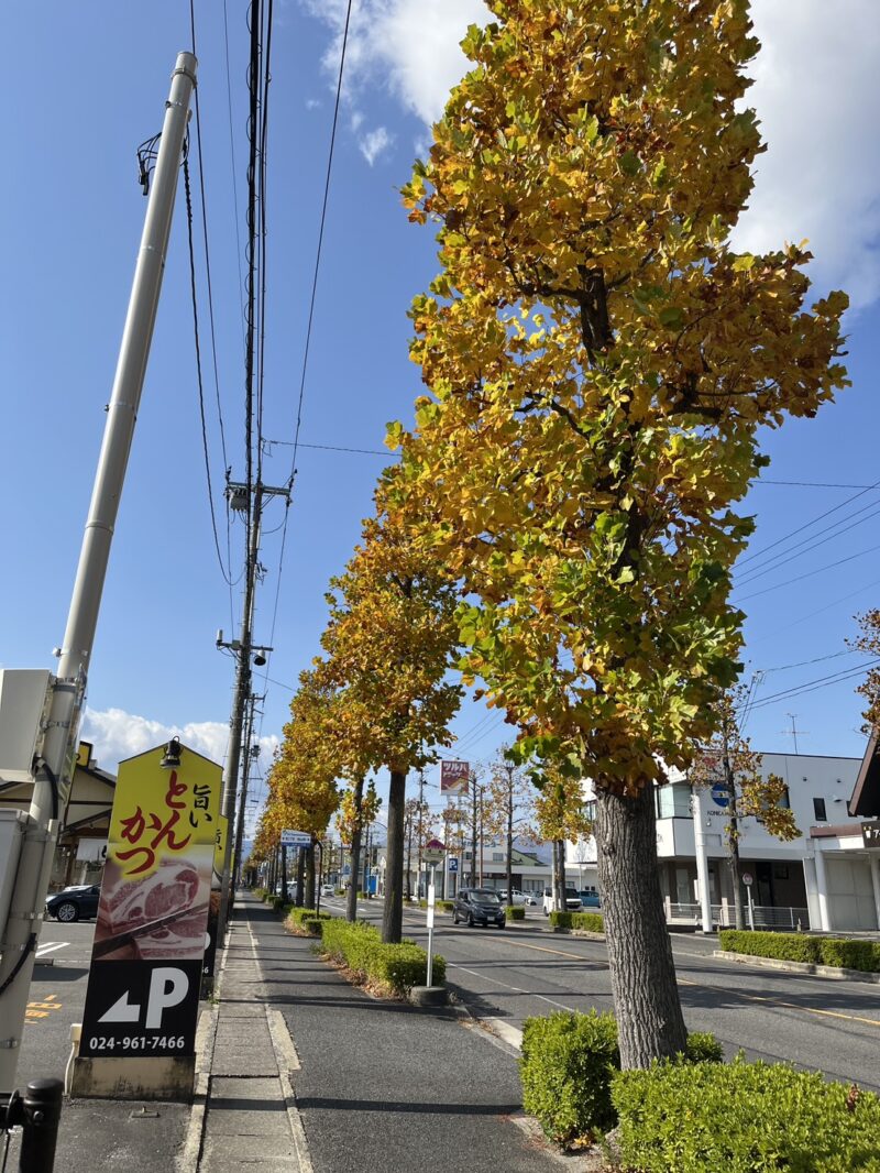 ふと見上げると、道路沿いの木々が紅葉し始めており、思わず写真を撮りました。