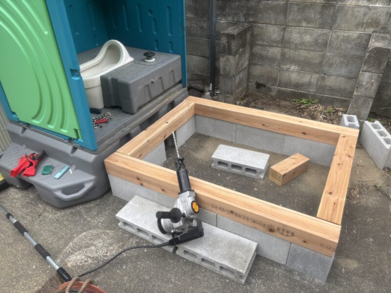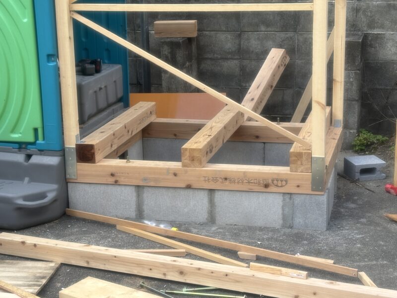 安価で制作するのがDIYの醍醐味!基礎となる部分は、お安いブロックで代用します。