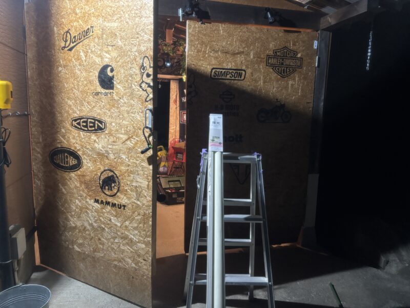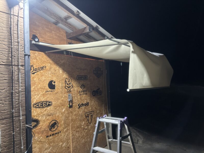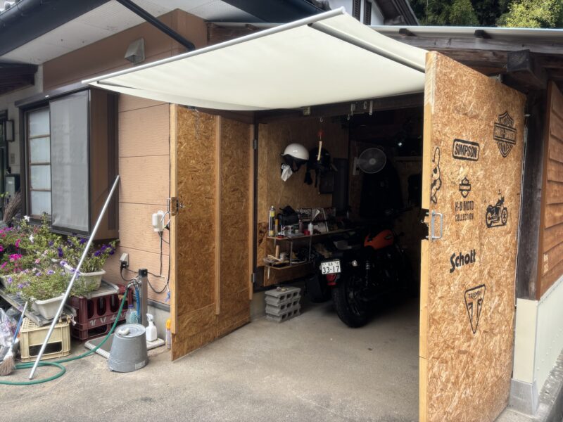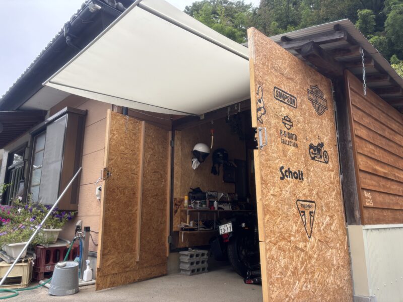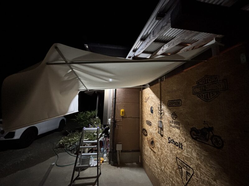 これで少しは屋根のある作業スペースがうまれました!伸ばして、たたんで、伸ばして、たたんで。