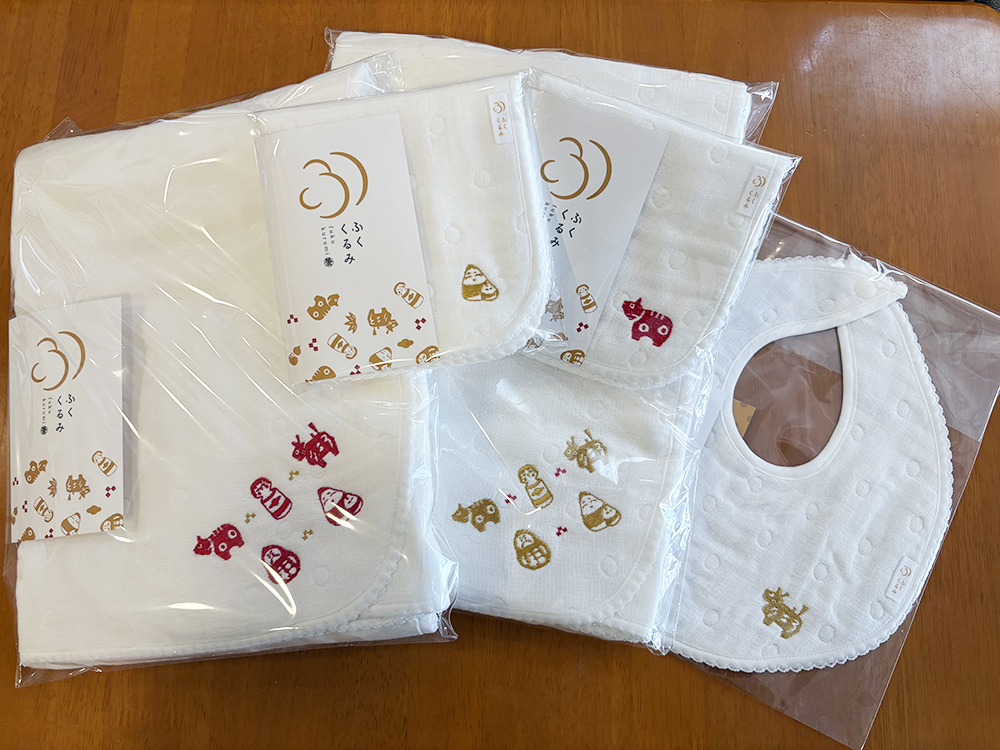 丸榮ふとん店の片田尚子さんにお話を伺いました。今回一本の水路ブランド認証を受けた「ふくくるみ(ハンカチ・スタイ・おくるみ)」は、福島の子どもたちの健やかな成長や健康を願って生まれた商品とのこと。