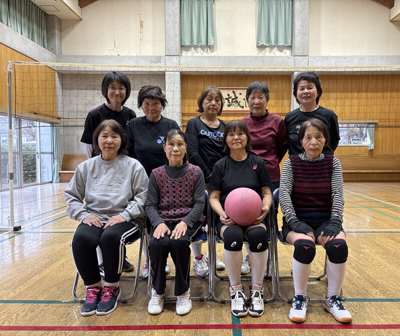平成 17 年に家庭バレーボールをプレーしていた方々が、いくつになってもバレーボールを楽しみたいと集まり結成された「フレンズクラブ」。50 代から 80 代の 10 人が毎週火曜日の 10 : 00 〜 11 : 30 に久留米地域公民館で活動をしています。