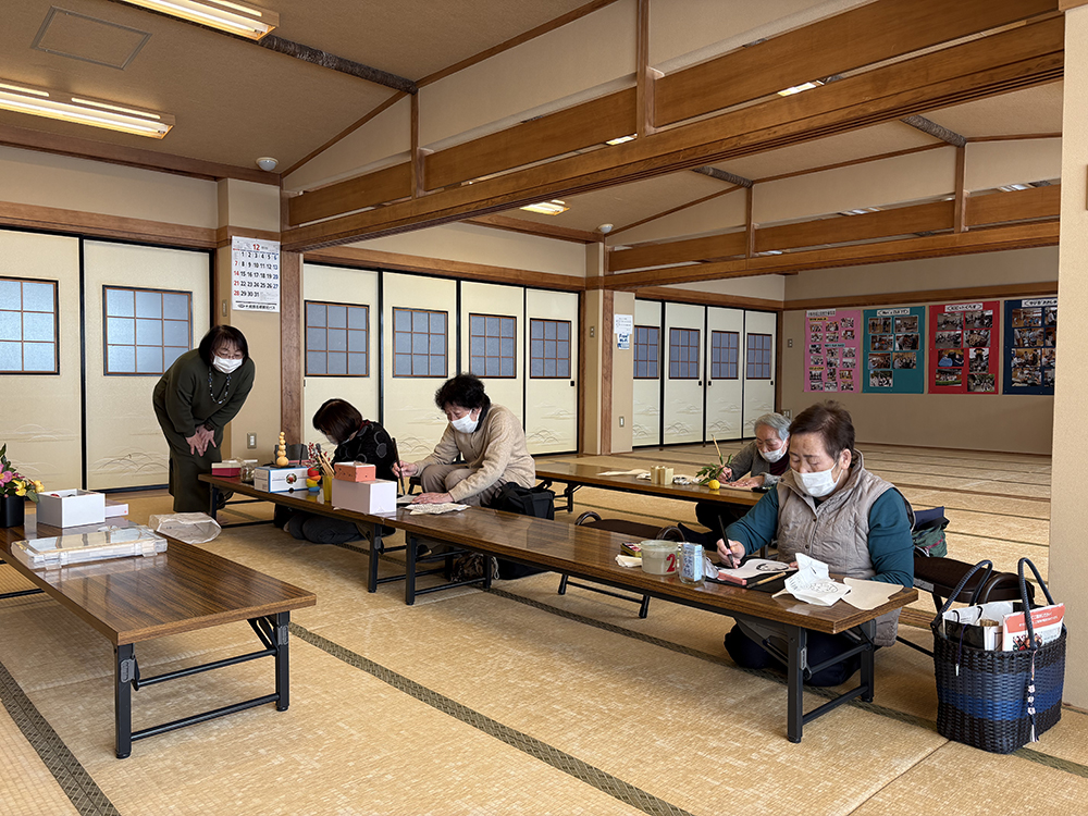 描いた絵手紙を友人に送り、喜んでもらえた時、絵手紙でお返事をもらえた時に一番喜びを感じるそうです。花や果物など普段何気なく見ていたものも、絵手紙を描くために、よく観察するようになったとのこと。また、筆をとり絵や文字を描くことはボケ防止にもなっています。「絵手紙の楽しさを多くの方に知っていただきたいですし、一緒に楽しめる仲間も増やしたいですね。興味のある方はお気軽に体験にいらしてください」と抱負を話していただきました。