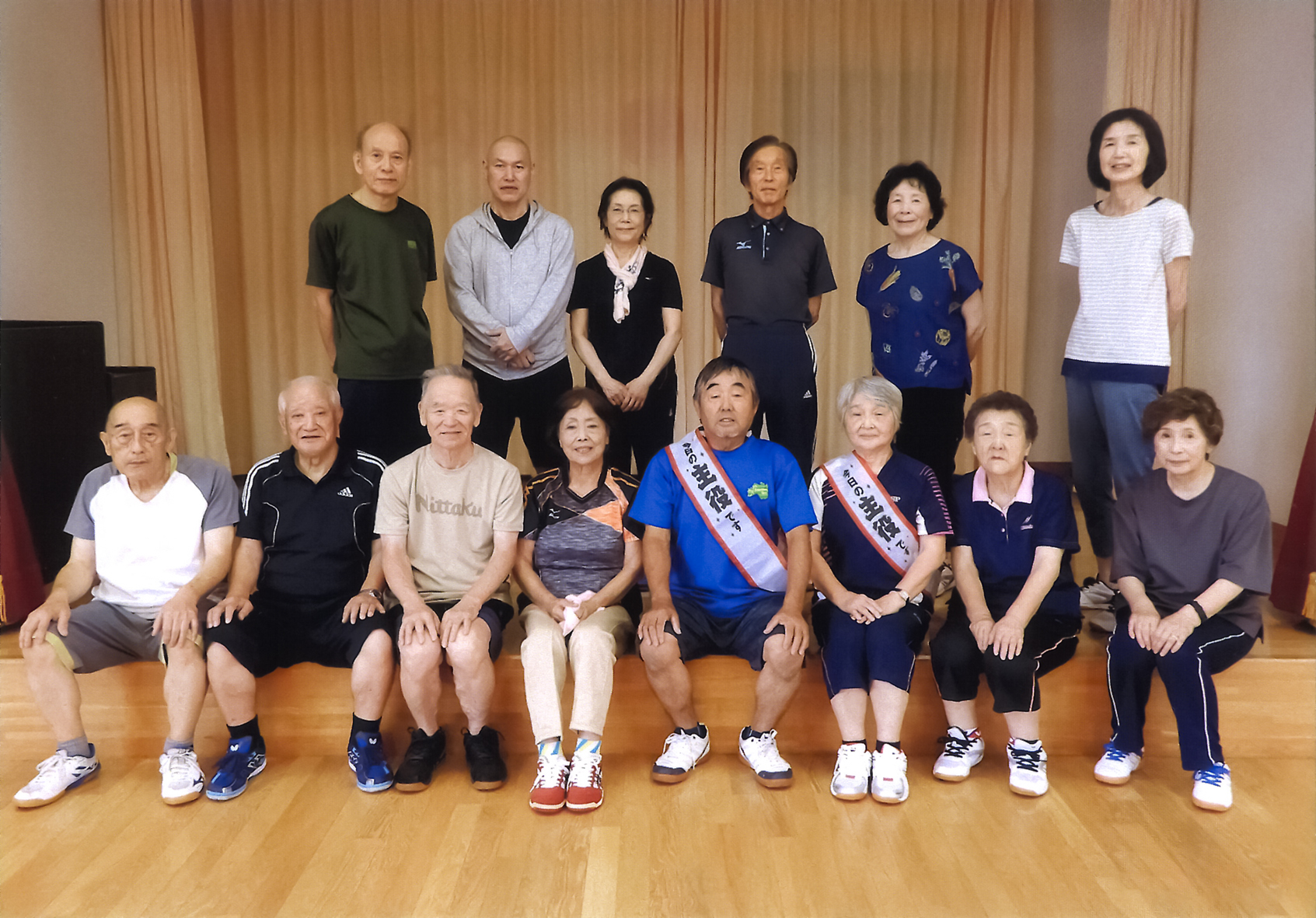 メンバーの古川俊さんにお話を伺いました。「現在、70 〜 80 代の 15 人で毎週月曜日の 9 : 00 〜 12 : 00 に大島地域公民館で練習をしています。クラブのモットーは、怪我をせず楽しく和やかな雰囲気でプレーすることですね」。